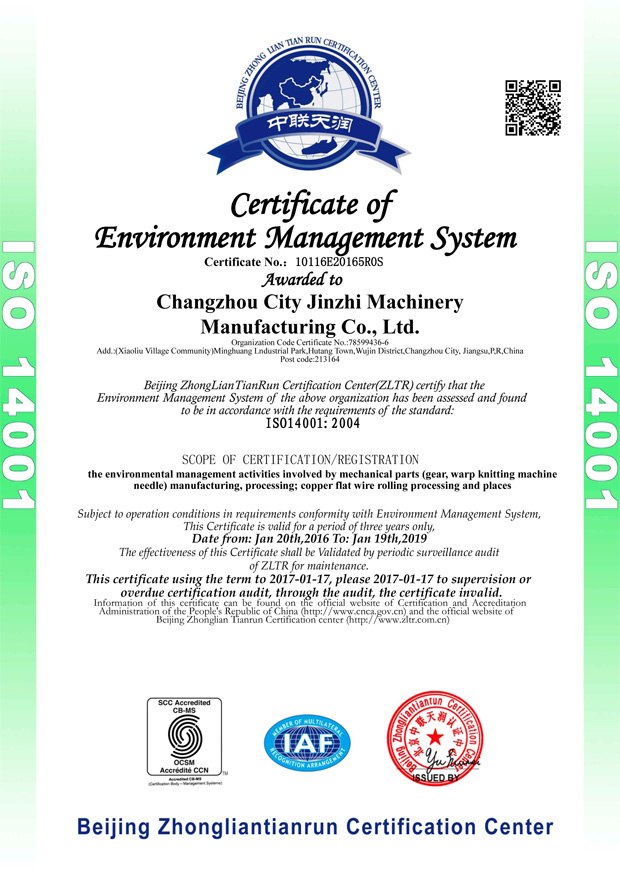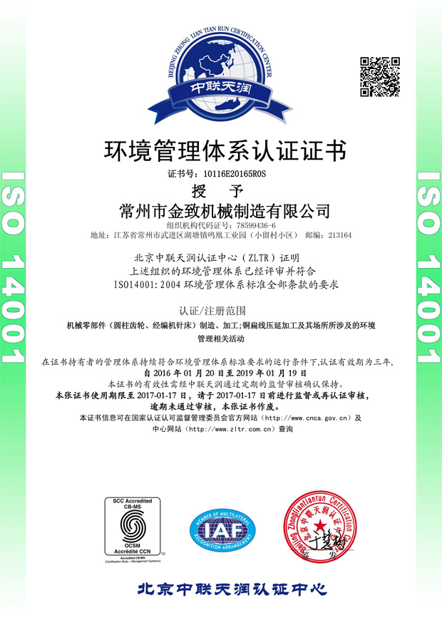 公司通过ISO14001:2004环境管理体系认证证书
